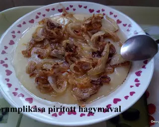 Készen sűrű kása állagúnak kell lennie.A hagymaszeleteket pirosra sütöttem.