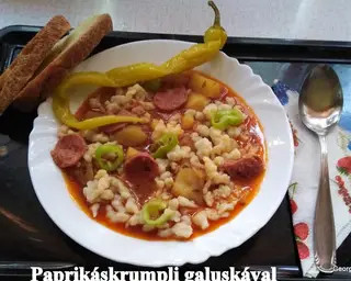 Hagymát megdinszteltem, rátettem a krumplit, pirospaprikát, fűszereket.