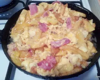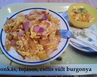 Ráöntöttem a sonkás megsült krumplira, megsütöttem rajta a tojást is.